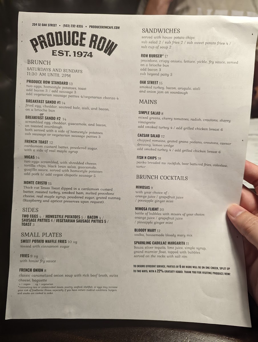 Welcome to Produce Row Cafe, a culinary gem nestled in the heart of Portland, Oregon at 204 SE Oak St. This inviting cafe encapsulates the vibrant spirit of the city with its exceptional food, tantalizing drinks, and a warm atmosphere. Whether you’re looking for a laid-back dining experience or a cozy spot to gather with friends, Produce Row Cafe checks all the boxes.